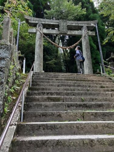 時間もあったので、上色見熊野座神社へ。 ここは有名なところだけど、遠かったので、なかなか来られなかったんだ。 えっ、ずっと石段! とヤマップ ON220段の石段を登って拝殿へ数人が上に行くのを見て、我々も。 穿戸磐(うげどいわ)どんなに困難なことも…